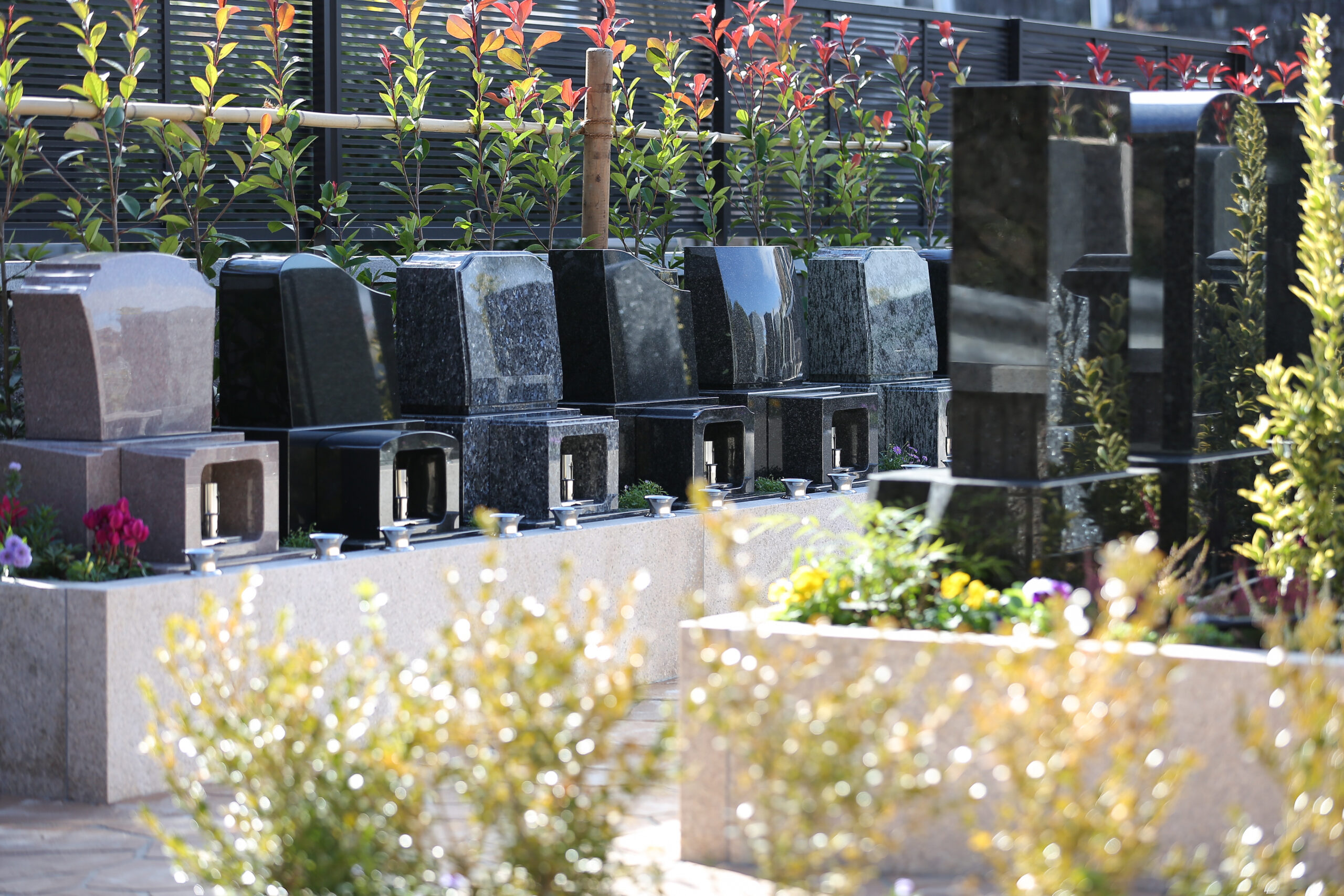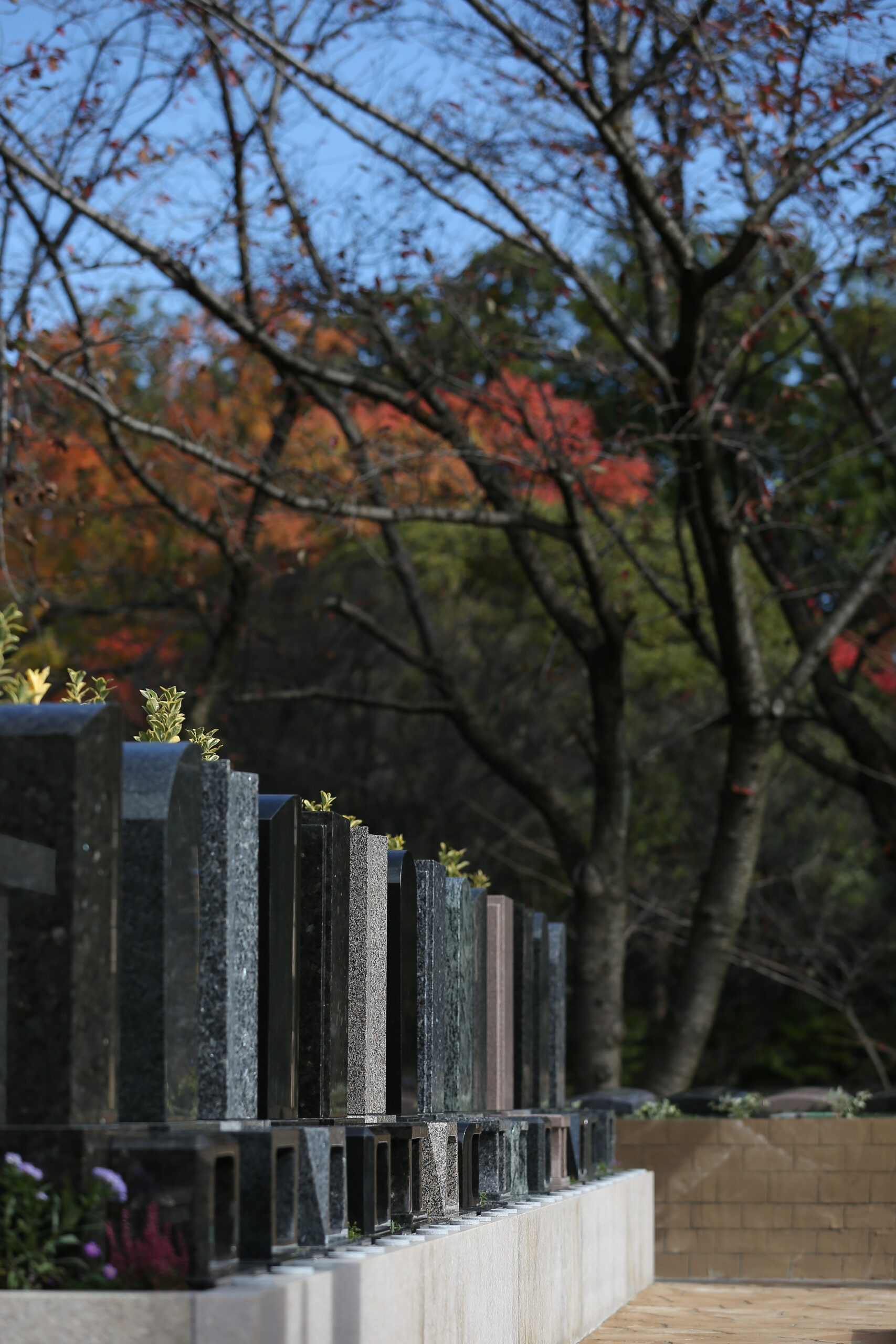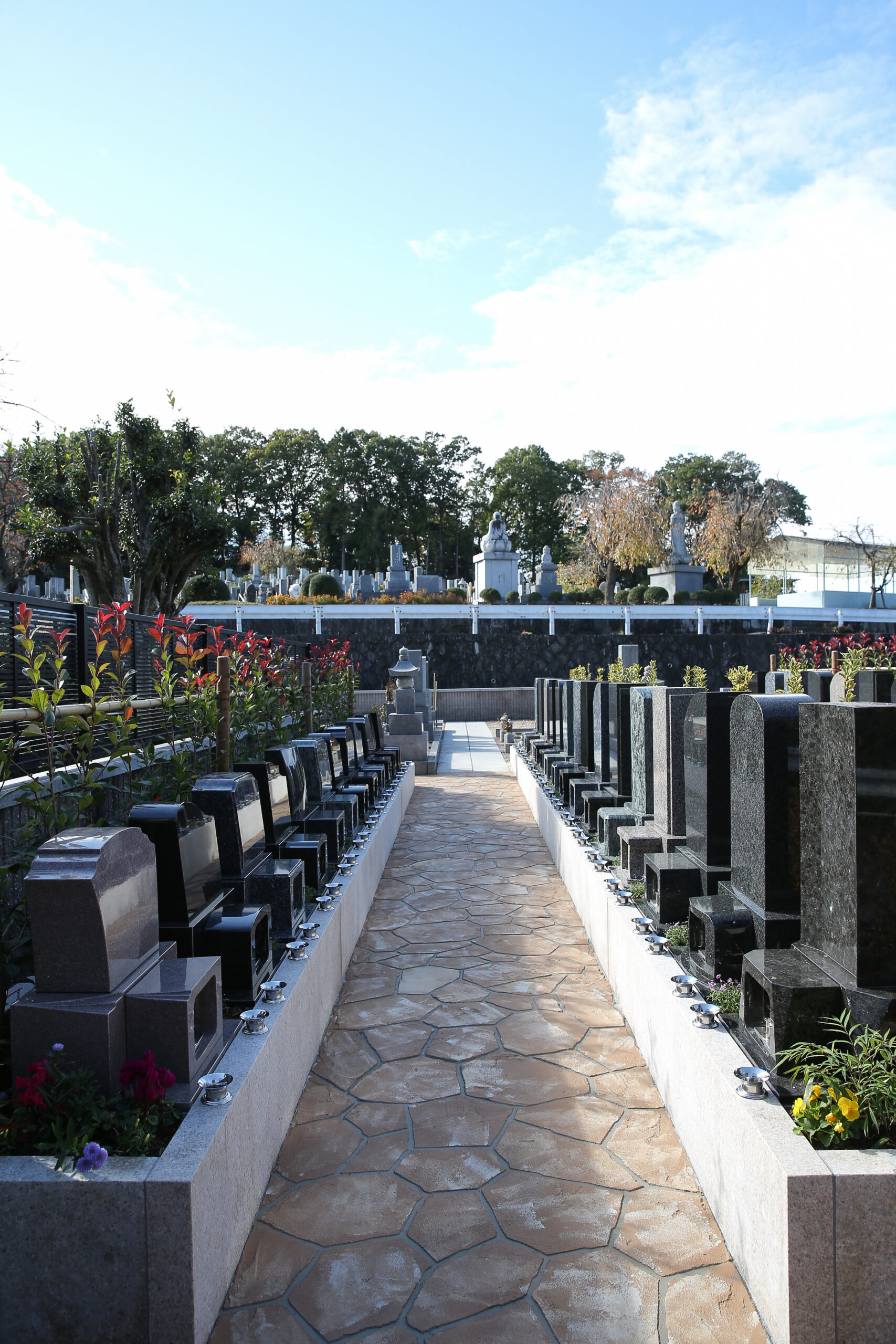 彩り豊かな花や樹木に囲まれた一年中きれいな墓園です。