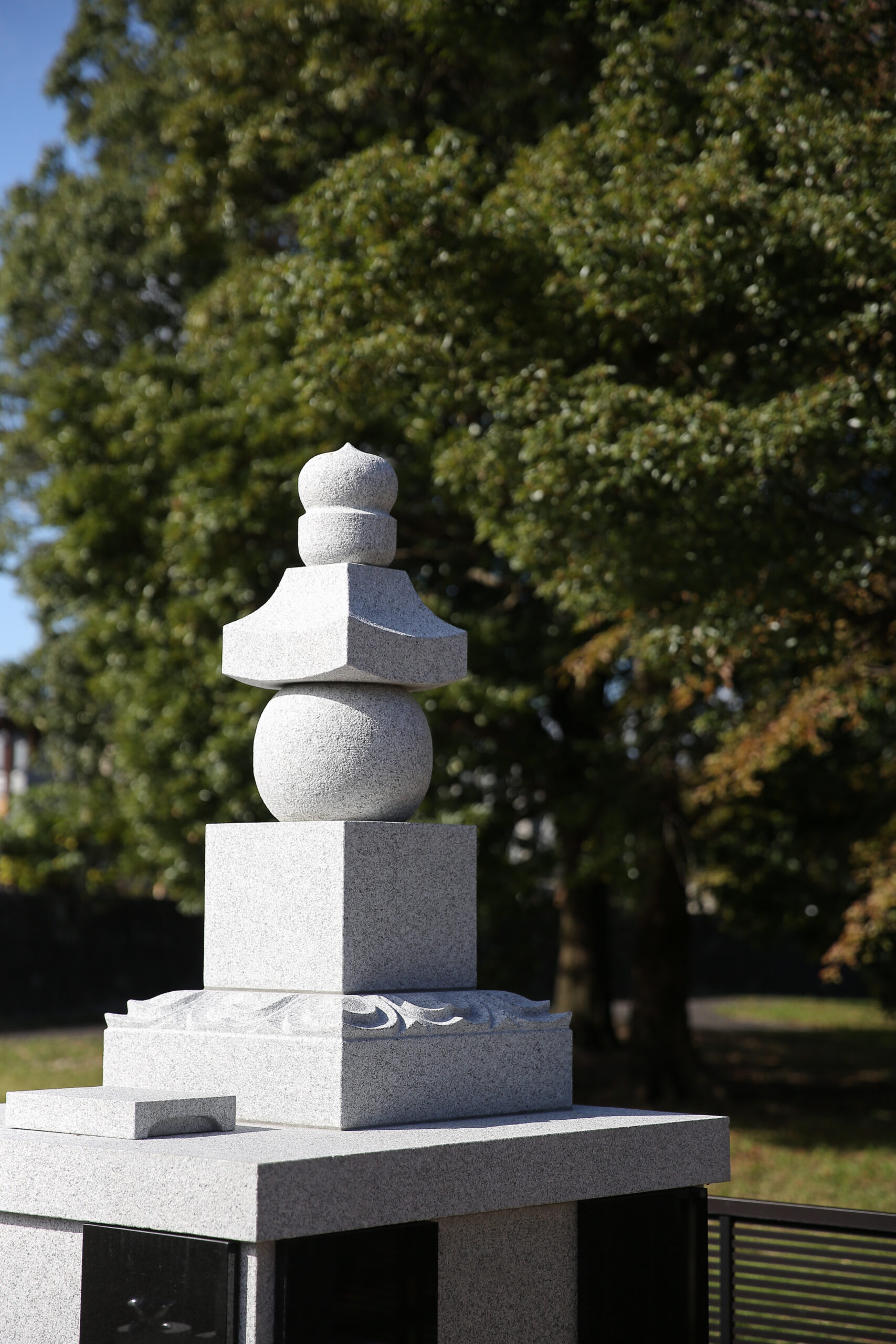 明るい雰囲気の庭園墓地に立つお墓