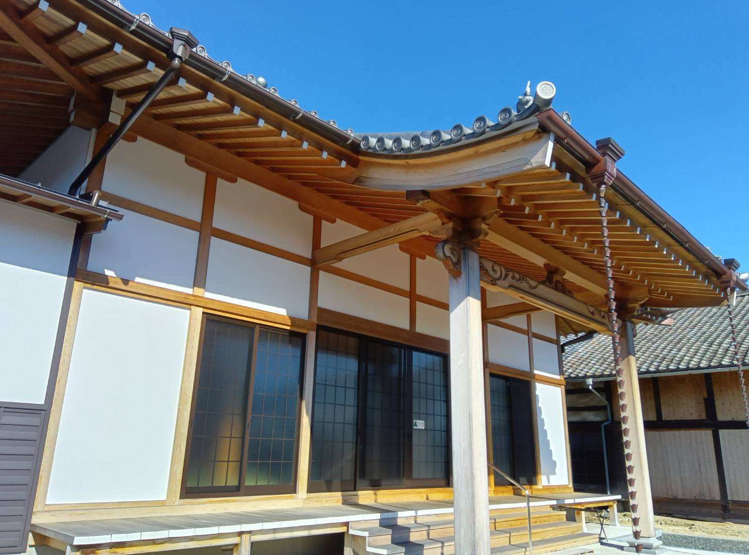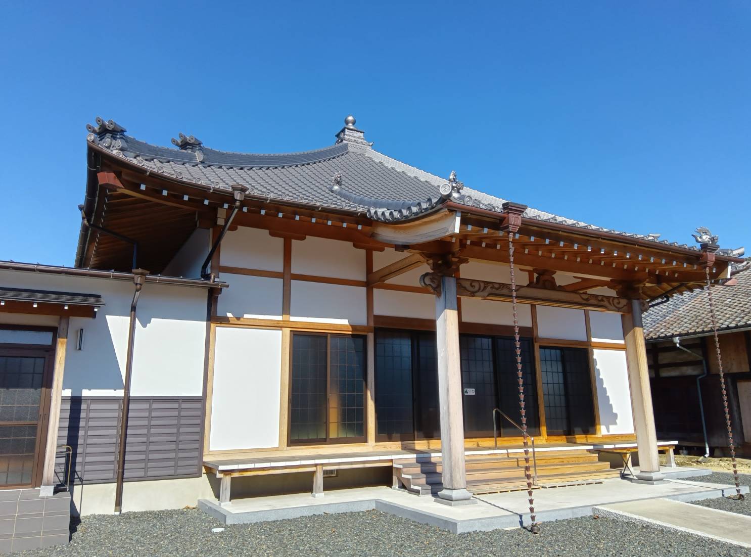 当時のお寺は雨漏りがひどく、先代が亡くなってから12年も空き寺の状態でした。そこから今日まで、地域の皆さまに支えていただきながら歩んできました。数年前には長年の念願だった本堂も建て替えることができ、この地でようやく根を張れたと感じています。
