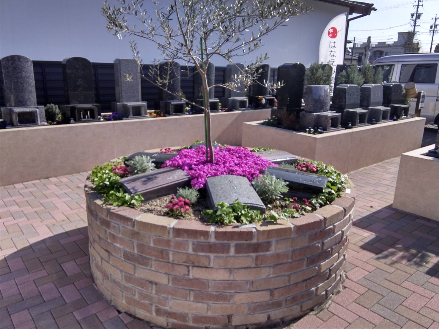 彩り豊かな花や樹木に囲まれた一年中きれいな墓園です。