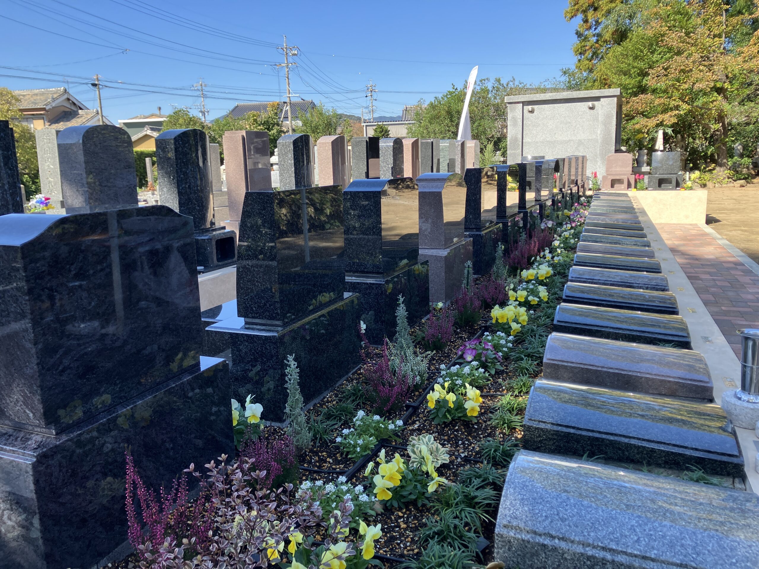 彩り豊かな花や樹木に囲まれた一年中きれいな墓園です。