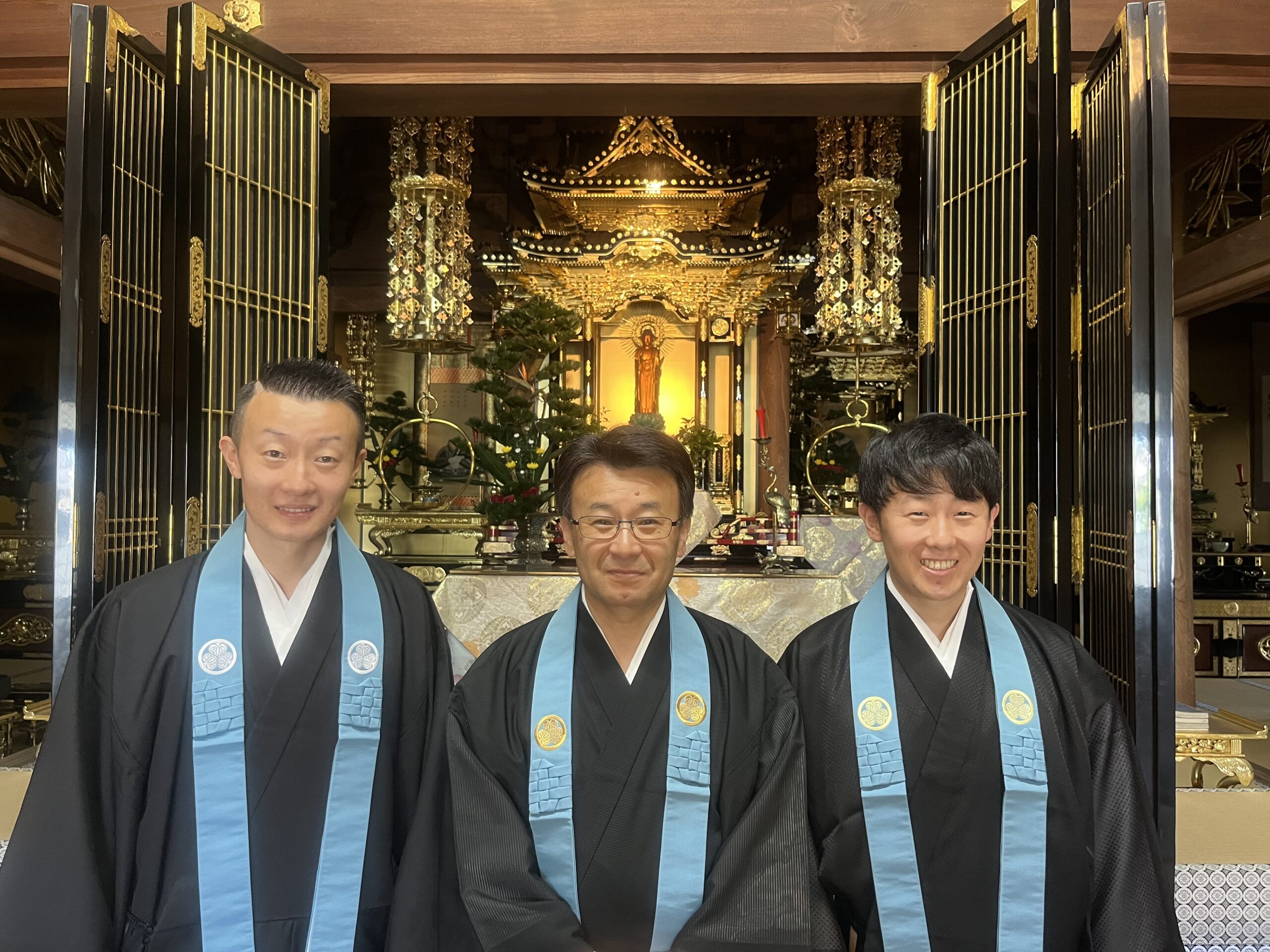 私には、副住職を務める長男と、京都の本山で学んでいる次男がおります。親子三人で、この矢作の地で皆さまをお待ちしています。「またお寺に行ってみよう」そう思っていただけたら、それが一番うれしいです。どうぞお気軽にお越しください。