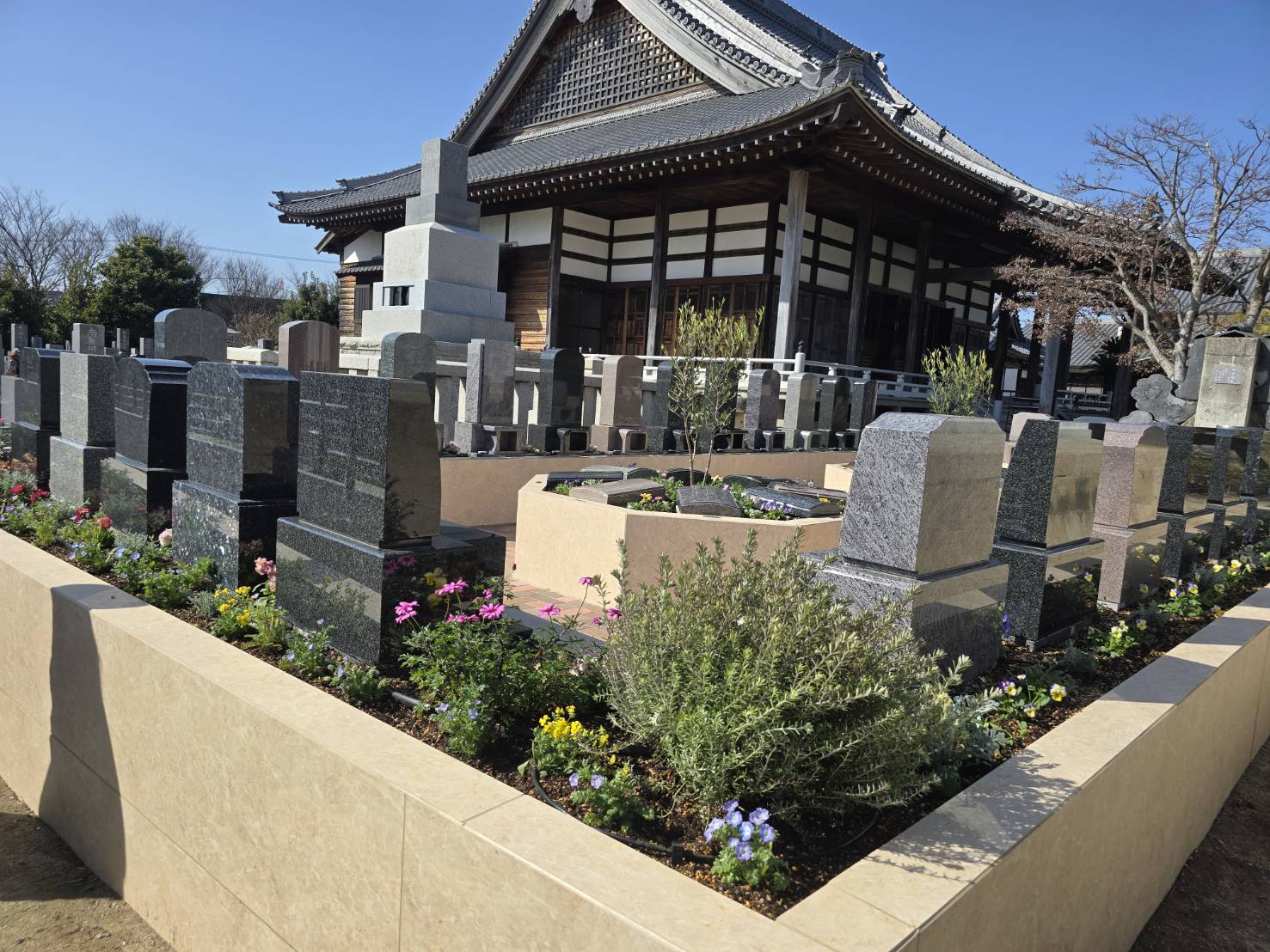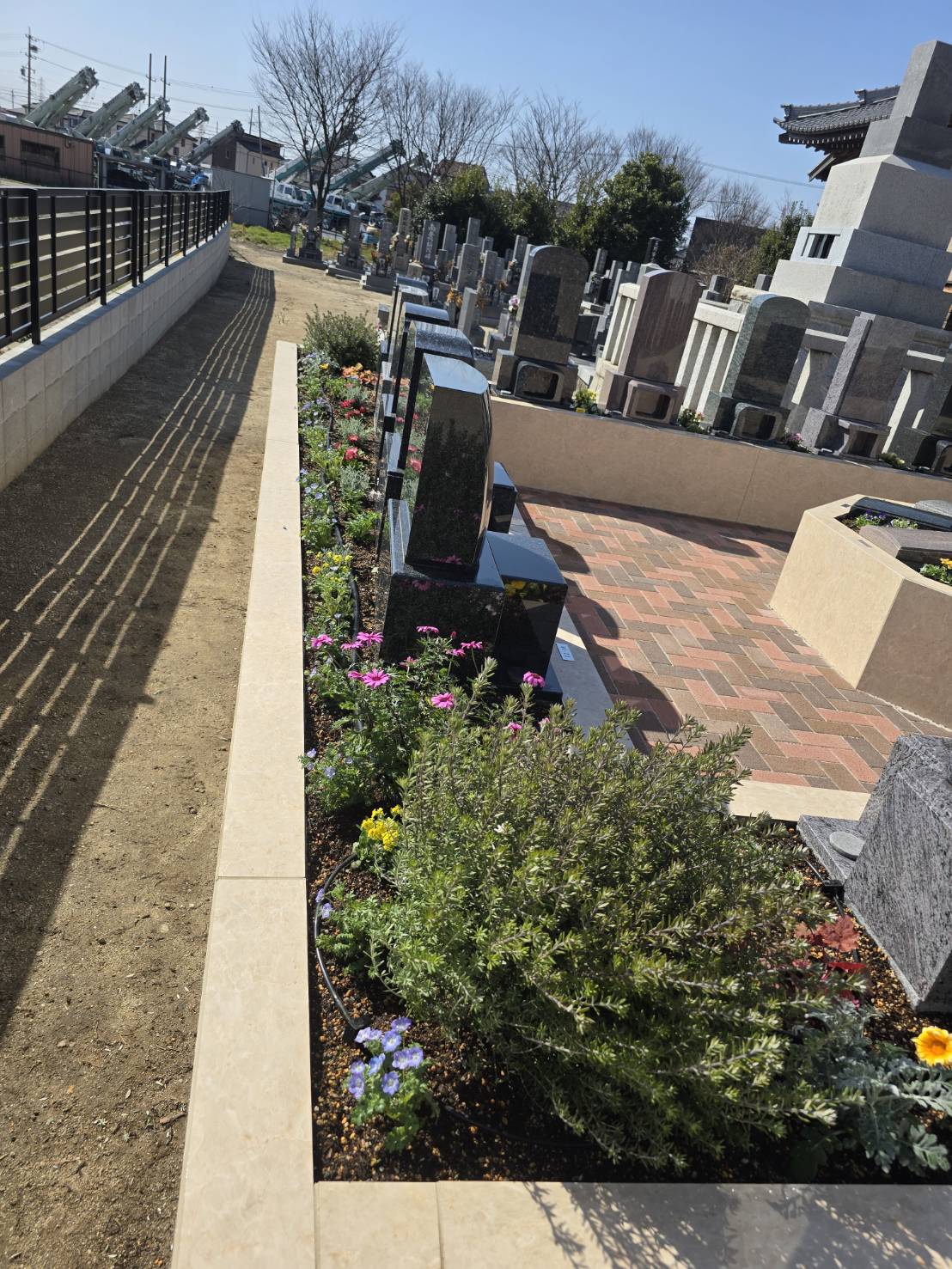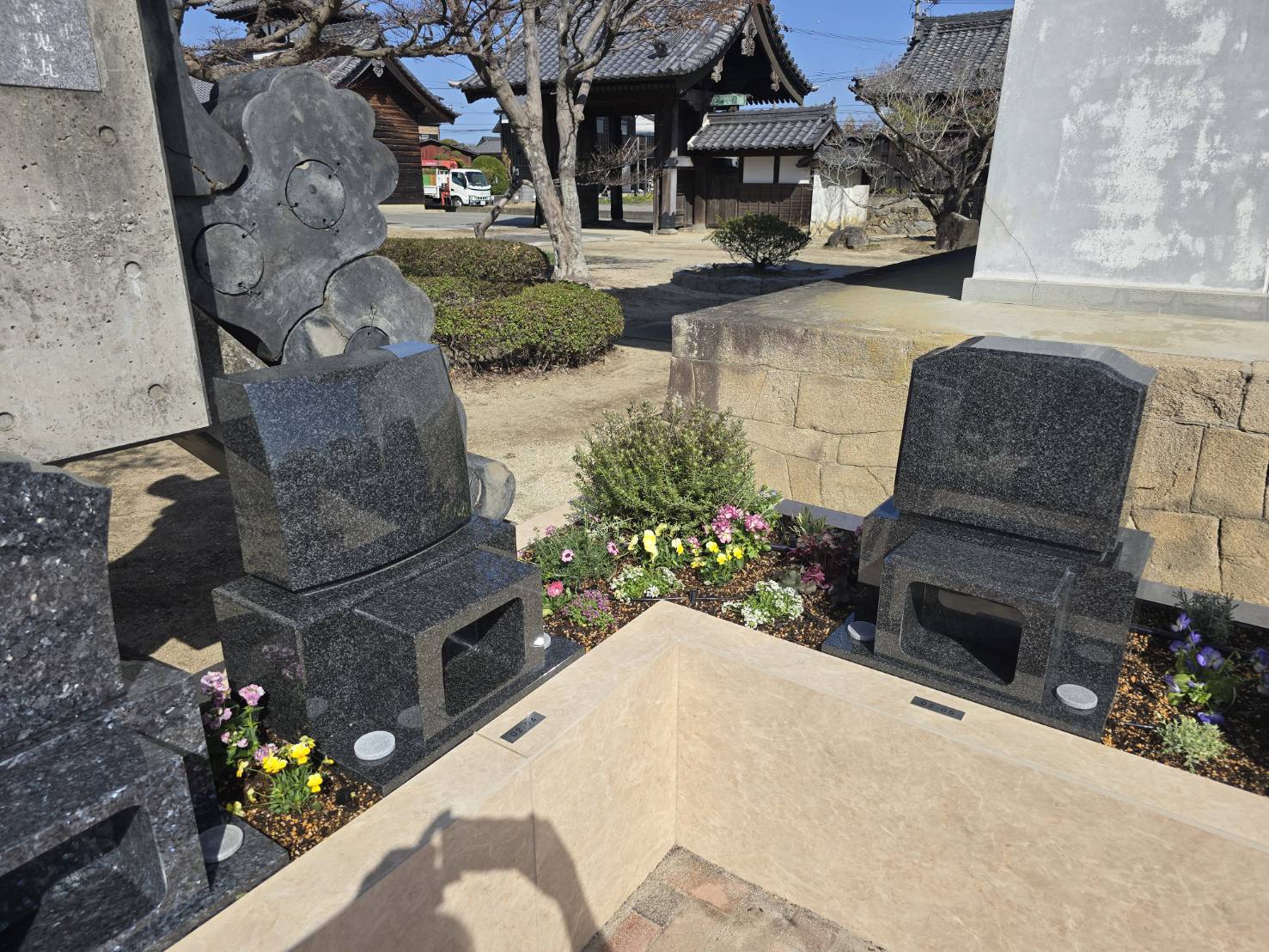 兄が選んでくれた場所ですが、ご縁があって、このお寺にお墓が作れたことを、本当に良かったと思っています。お墓の周りにはお花がたくさん植えられ、お花畑のように明るい雰囲気です。管理も行き届いていて、いつ訪れてもきれいに手入れされています。近所なのでお墓参りも本当に気軽にできます。気が向いたときにふらっと行ける距離で、母も「お父さんのところに行く」といって、散歩のような感覚でお墓参りを楽しんでいます。